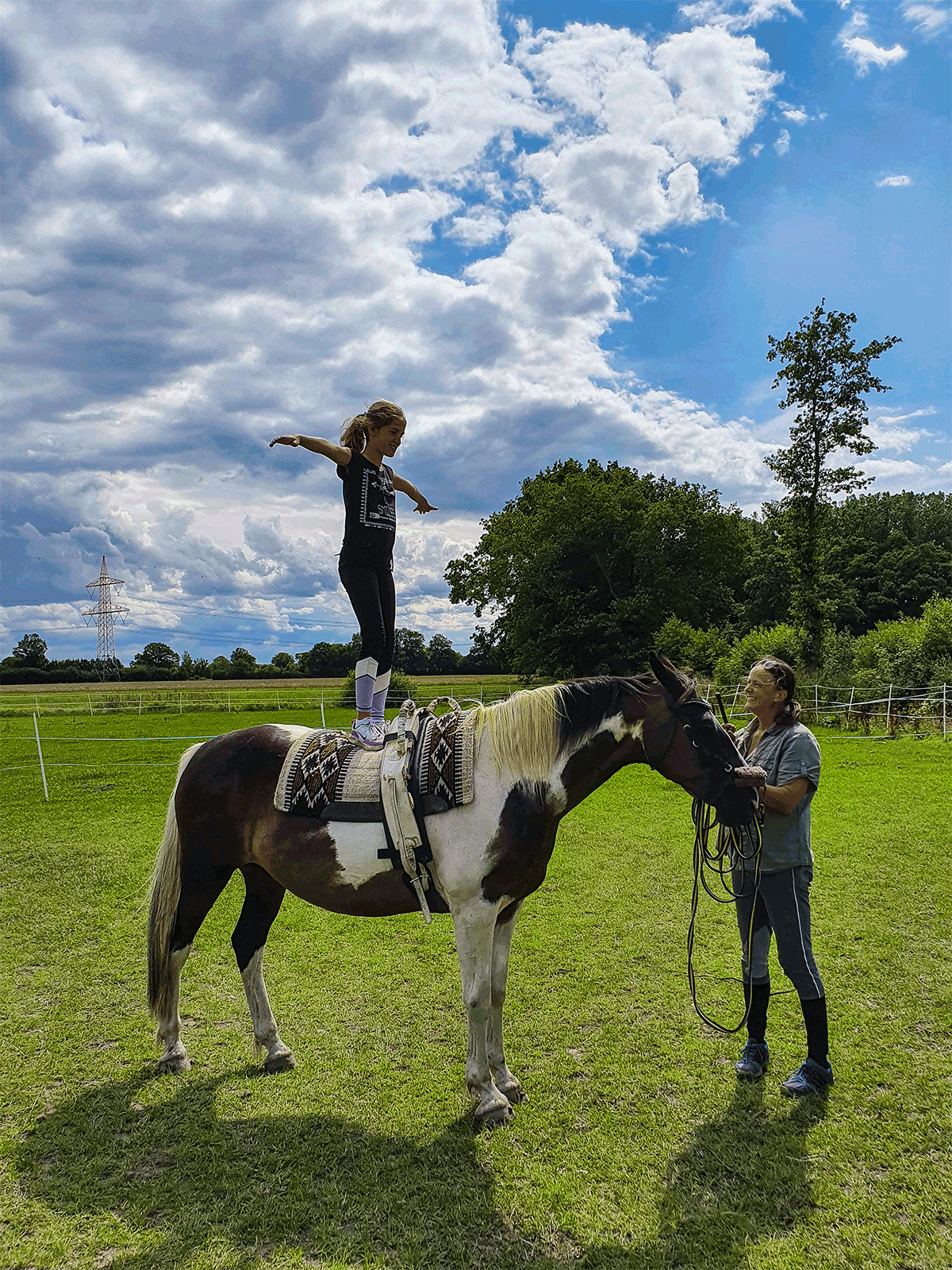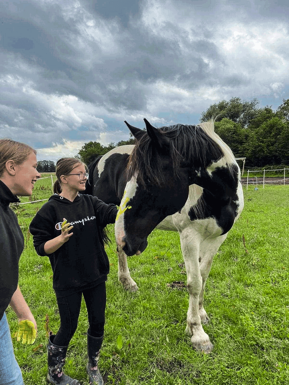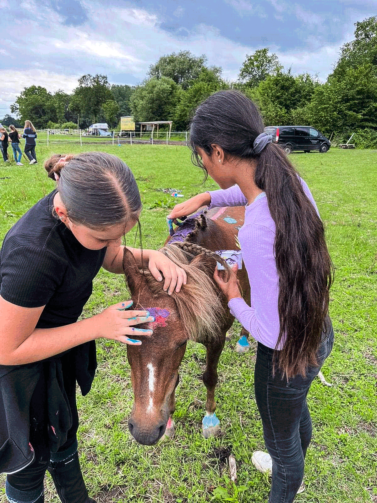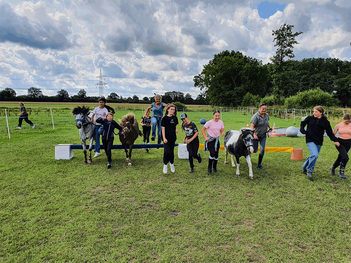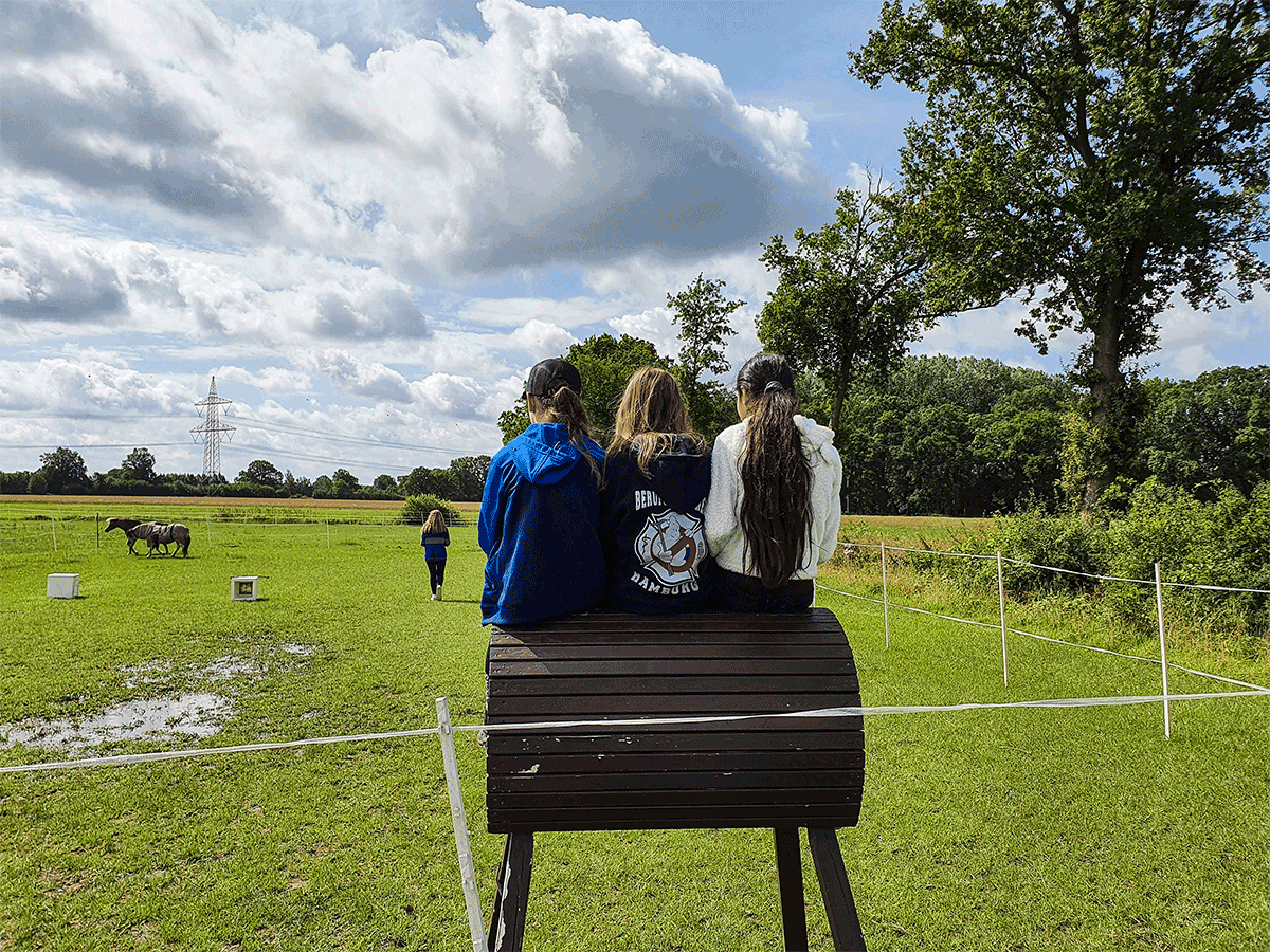 „Das war so schön, können wir das nächstes Jahr wieder machen?“ So war die einstimmige Meinung am Freitag bei der Abschlussrunde. Ein besseres Feedback gibt es wohl nicht. 10 Schülerinnen im Alter von 11-13 Jahren aus der Erich-Kästner-Gemeinschaftsschule Elmshorn haben ihre erste Sommerferienwoche auf der „Sternenkoppel“ in Tornesch verbracht, gemeinsam mit 7 Pferden, 3 Ponys, einem Husky, zwei Betreuerinnen und den Trainerinnen Britta Sey und Sibylle Kumm. Britta Sey, die Pferdebesitzerin, und ihre Kollegin Sibylle Kumm haben langjährige Erfahrung in pferdegestützter therapeutischer Arbeit und legen großen Wert auf artgerechte Haltung und respektvollen Umgang mit Tier, Mensch und Natur. Durch ihr besonderes Konzept bekommen Kinder und Jugendliche die Möglichkeit, sich auszuprobieren, in Beziehung zu gehen und ihre eigenen Potenziale zu entdecken. Das Projekt nennt sich „Pferdeführerschein“- Bewegung und Begegnung mit Pferden, Erleben und Lernen mit allen Sinnen. Die Mädchen haben in diesen fünf Tagen viel Neues über den Umgang mit Pferden gelernt, Neues an sich selber kennengelernt und viele positive Erfahrungen machen dürfen. Es geht bei diesem Projekt nicht vorrangig ums Reiten, sondern darum, Kontakt zu den Pferden aufzunehmen, sie zu berühren, zu streicheln, sich anzulehnen, sie zu führen, die Tiere und sich selbst zu spüren und mit allen Sinnen wahrzunehmen. weiterlesen...