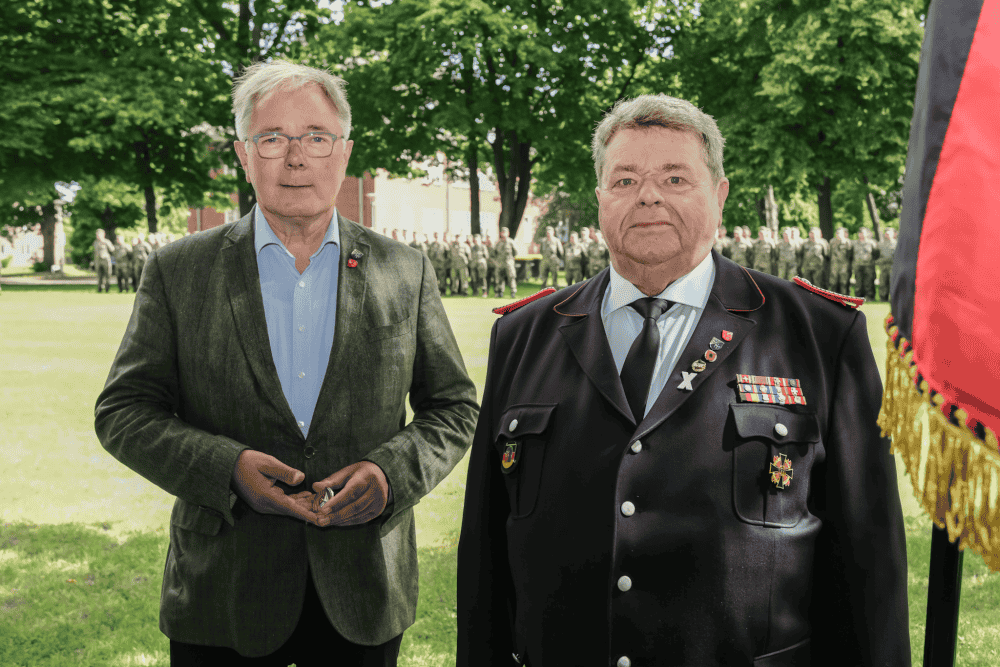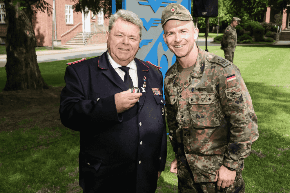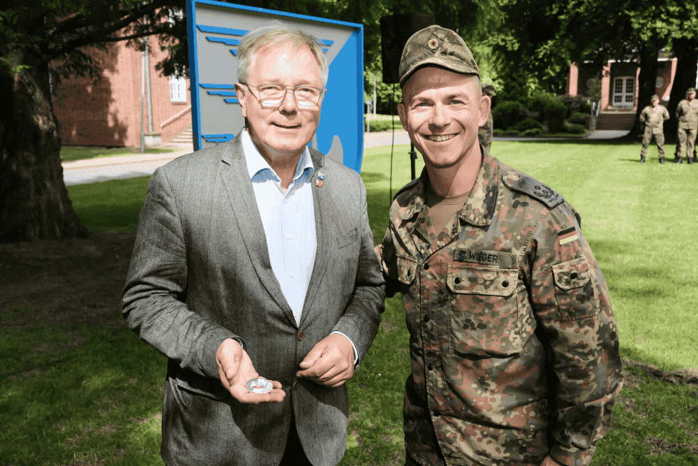 Oberstleutnant Michael Wieger betonte in seiner Ansprache: „Unser Eid verpflichtet uns nicht nur zur Treue gegenüber den Streitkräften, sondern auch zur Verantwortung in der Gesellschaft.“ Für ihren langjährigen Einsatz wurden Christel und Rolf Heidenberger mit einem Coin der I. Lehrgruppe geehrt – eine besondere Form militärischer Wertschätzung.