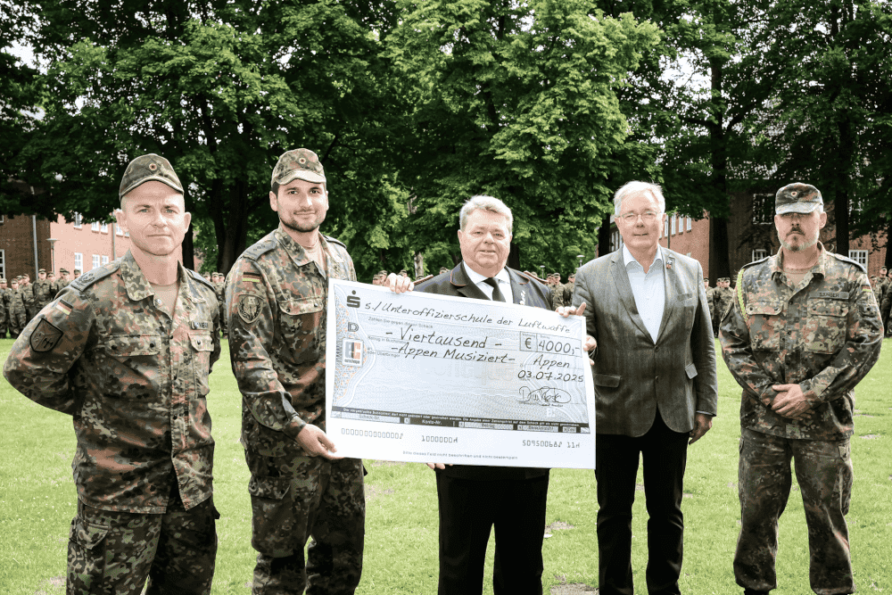 Jüngstes Beispiel: Im Rahmen eines Hörsaalabends sammelten die Soldatinnen und Soldaten der 5. Inspektion 4.000 Euro für „Appen musiziert“. Die feierliche Scheckübergabe fand in der Jürgen-Schumann-Kaserne statt – ein Zeichen tiefer Verbundenheit und gesellschaftlicher Verantwortung.