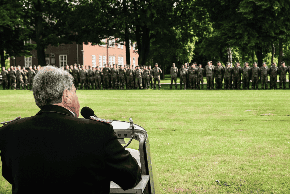 Oberst Dietmar Hinze würdigte bei einem Antreten der gesamten USLw das Engagement für die Aktion „Keine Gewalt gegen Kinder und Jugendliche“ und überreichte im Namen des Ministerpräsidenten eine Dankesurkunde. Diese Auszeichnung ist zugleich Anerkennung und Ansporn – für ein Miteinander, das über den Kasernenzaun hinausreicht.